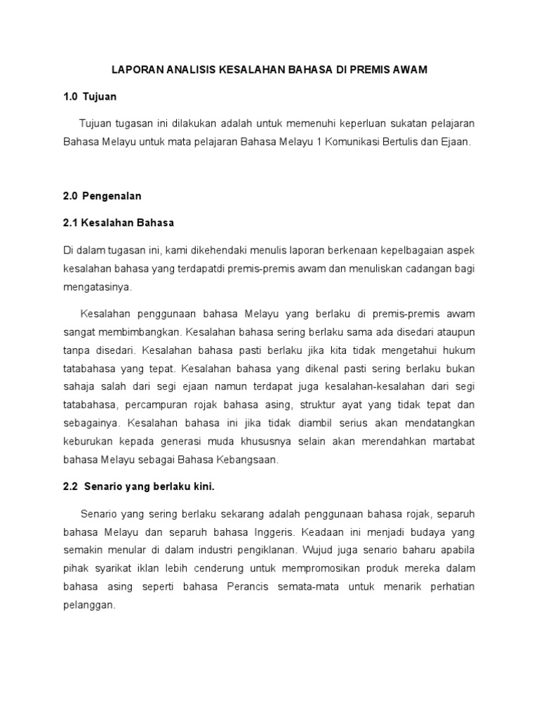 Laporan Analisis Kesalahan Bahasa Di Premis Awam Pdf
