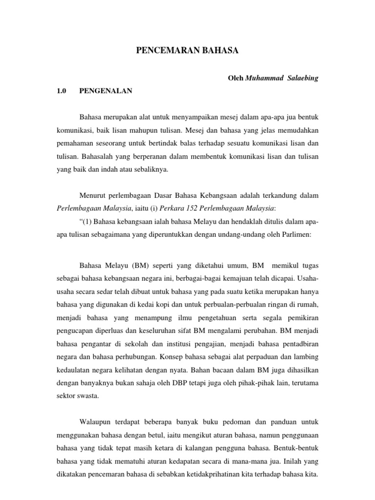 Daripada pemerhatian saya hal ini berlaku dalam semua karya sastera yang pernah saya bacaHal ini membuktikan. A Sebutkan faktor-faktor yang menyebabkan berlakunya kesilapan bahasa dalam kalangan pengguna bahasa Melayu. Saya tidak dapat bayangkan penggunaan Bahasa Melayu 10 atau 20 tahun lagi yang saya rasakan tidak akan wujud lagi.
